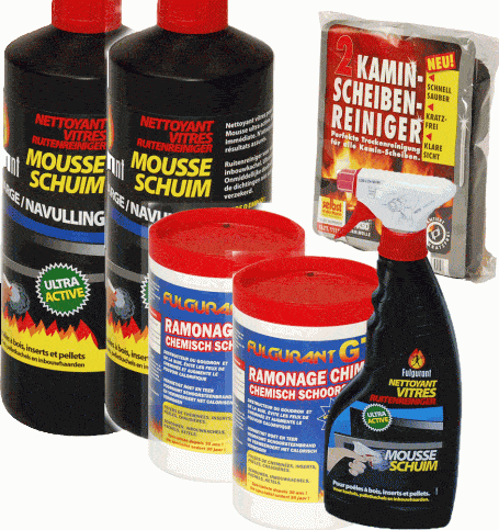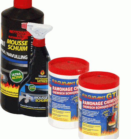Ruitenreiniger (mousse schuim) voor houtkachels en pelletskachels.